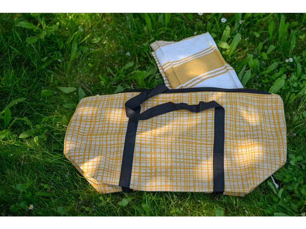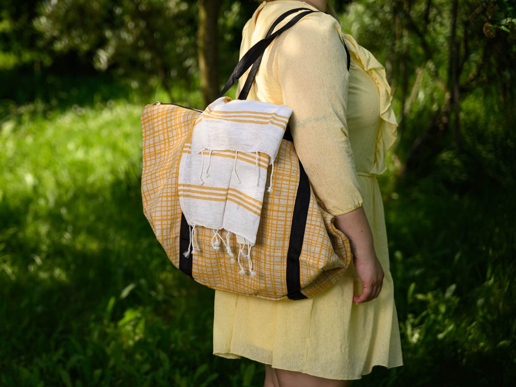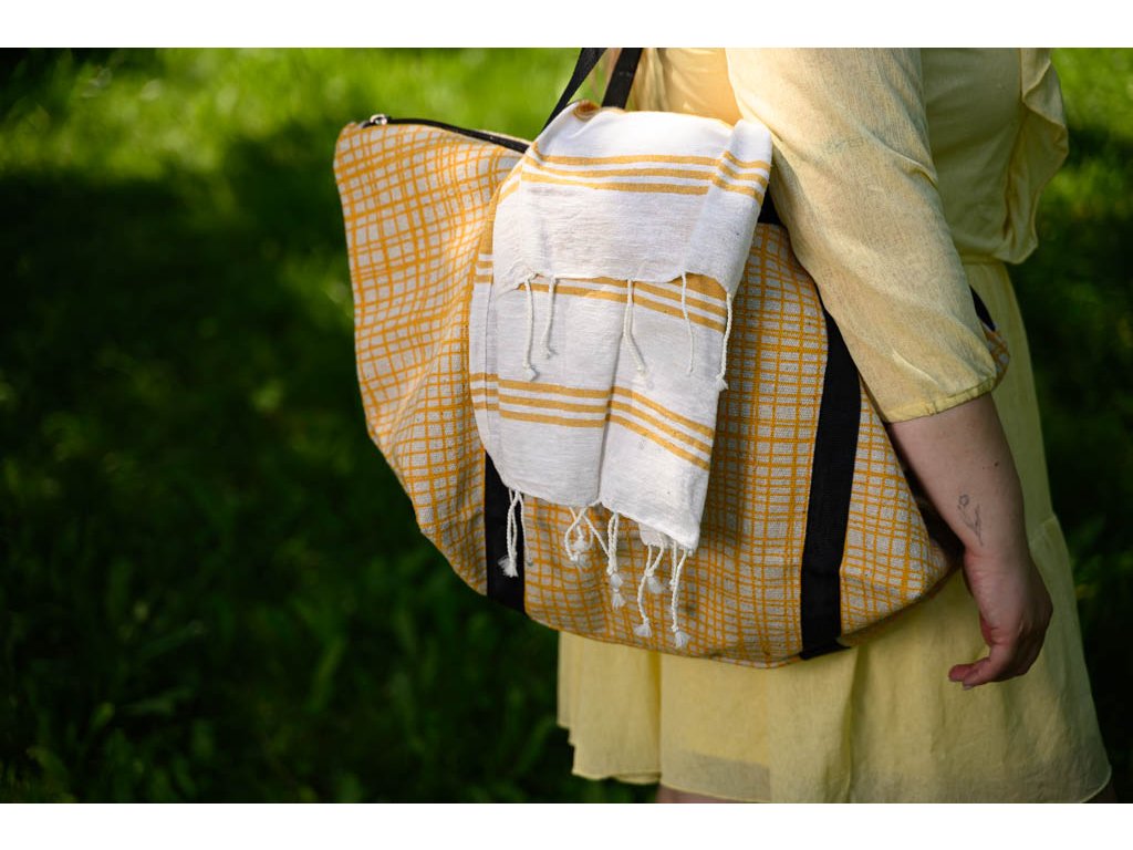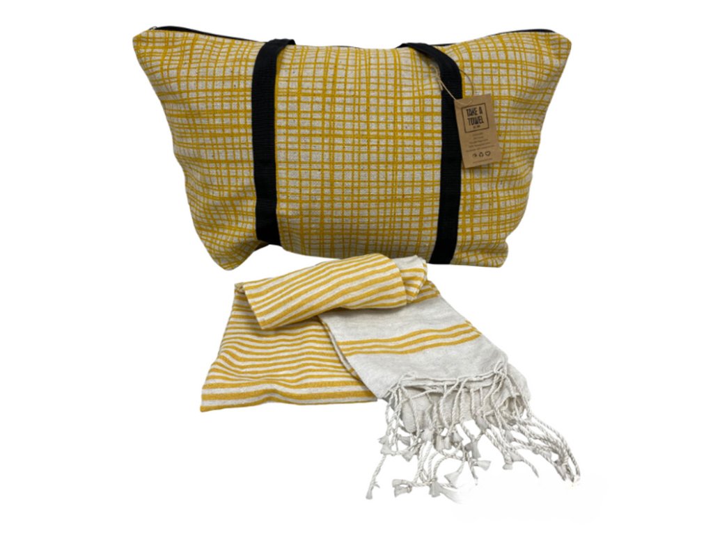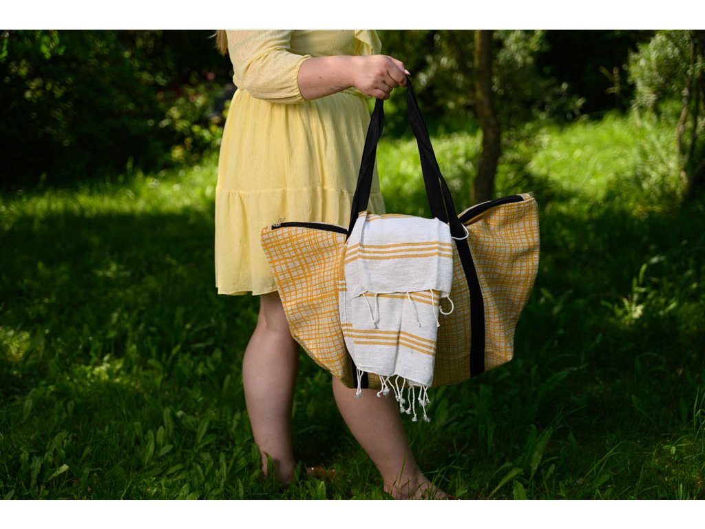 Eleganten komplet plažne torbe + brisače HAMAM 75x150 cm, oker rumena