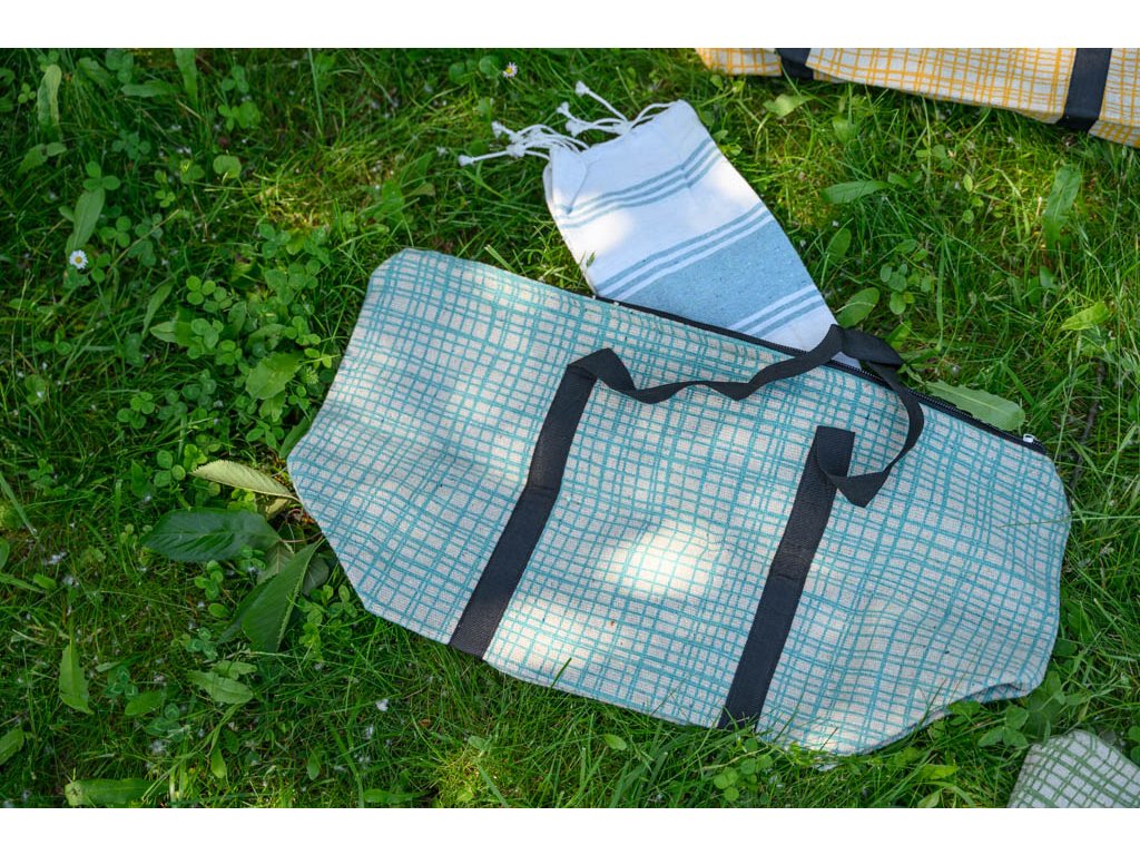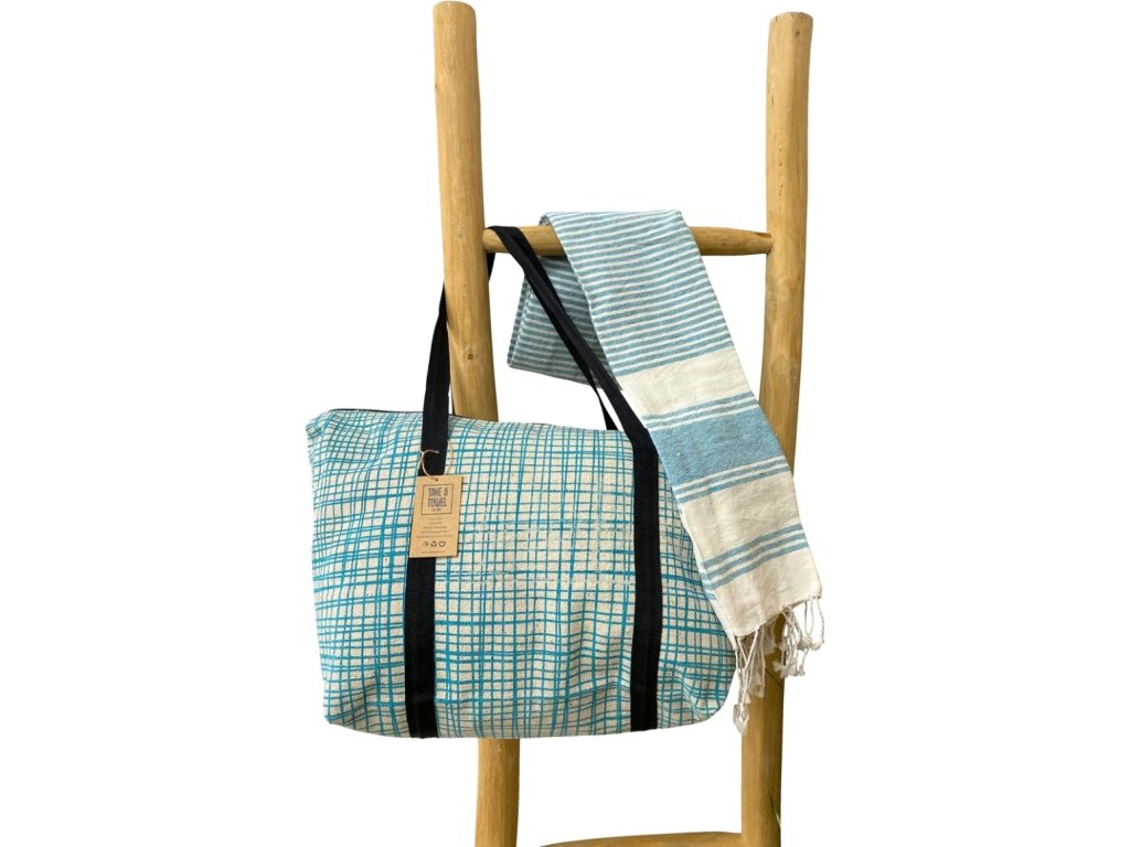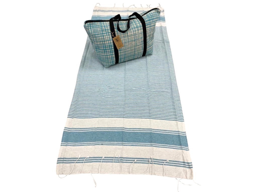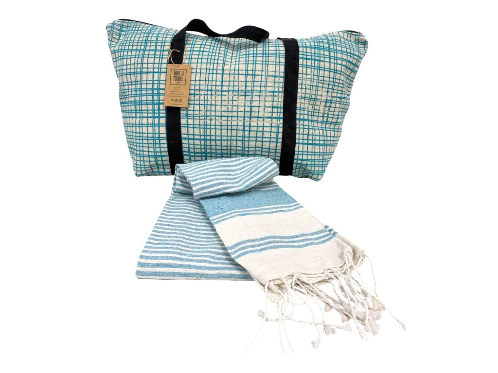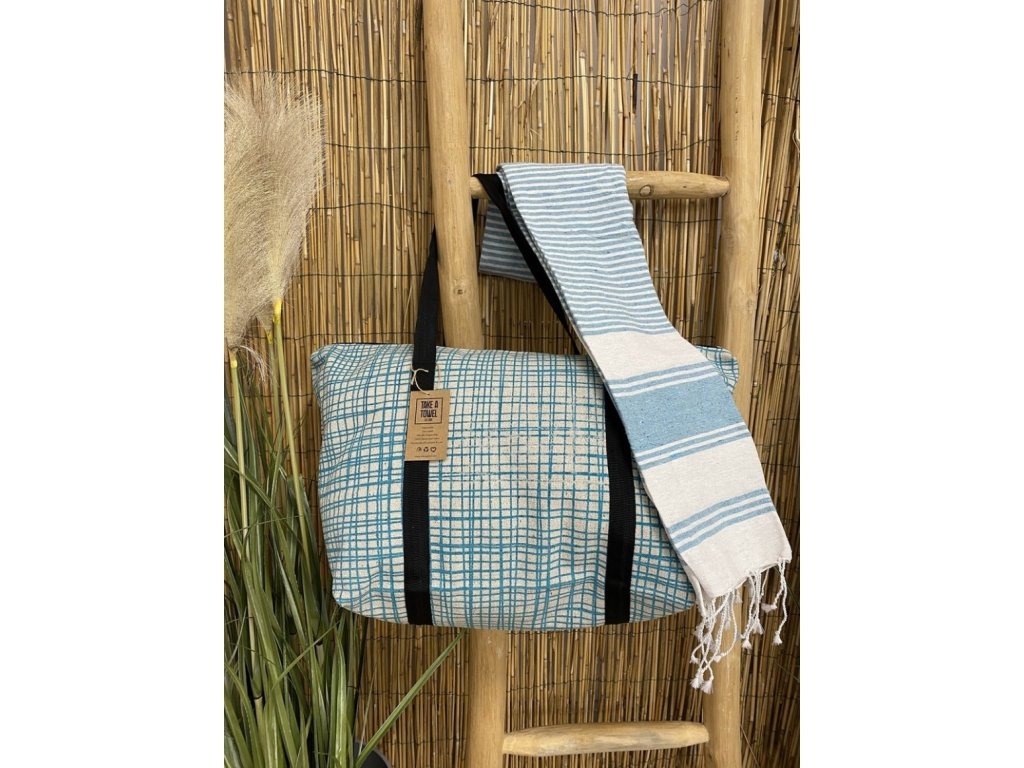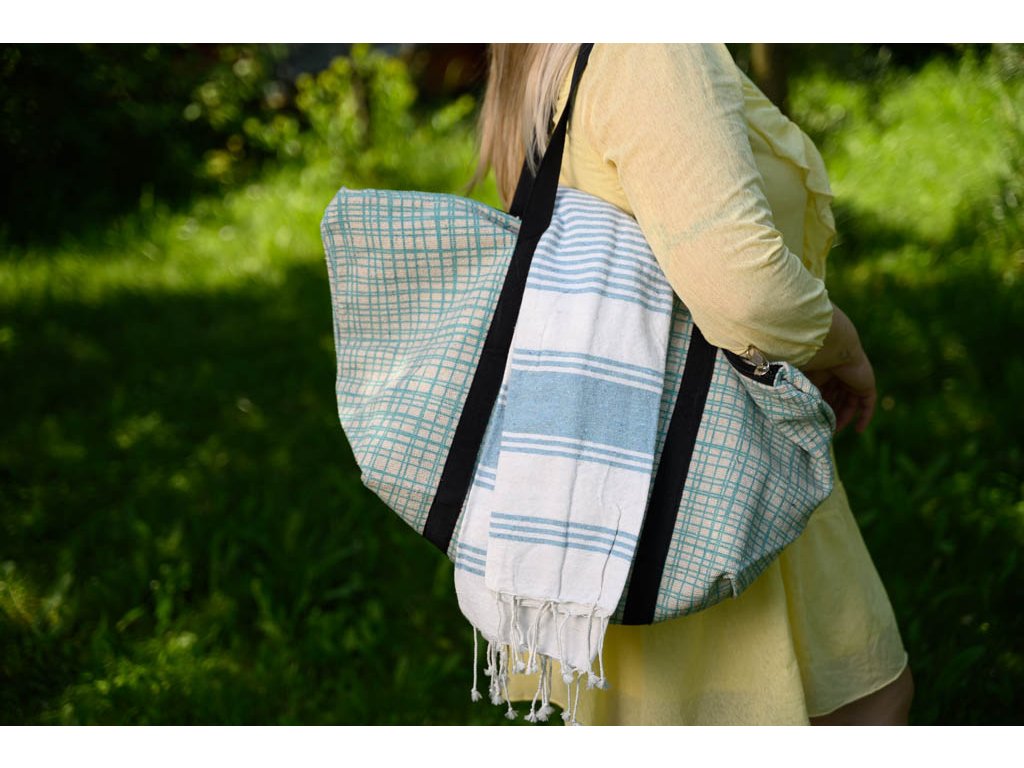Stilski komplet plažne torbe + brisače HAMAM 75 x 150 cm, turkizen