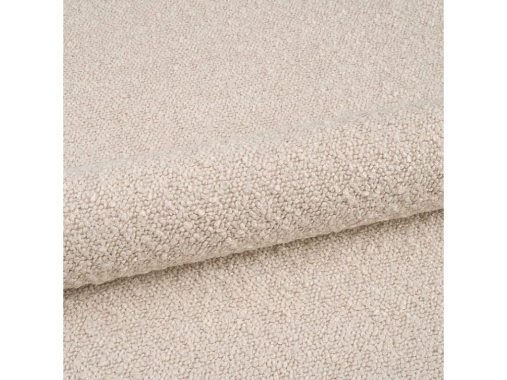 Prevlečna tkanina BALOO je zanimiva zaradi svojega značilnega zankastega površja, tipičnega za tkanine tipa bouclé. Zankasta preja je trdno vtkanjena v gosto in odporno podlago, kar tkanini doda ne le privlačen videz, temveč tudi visoko življenjsko dobo. Rezultat je material, ki deluje elegantno, ustvarja nežno strukturiran efekt in hkrati ohranja praktične lastnosti za vsakodnevno uporabo.