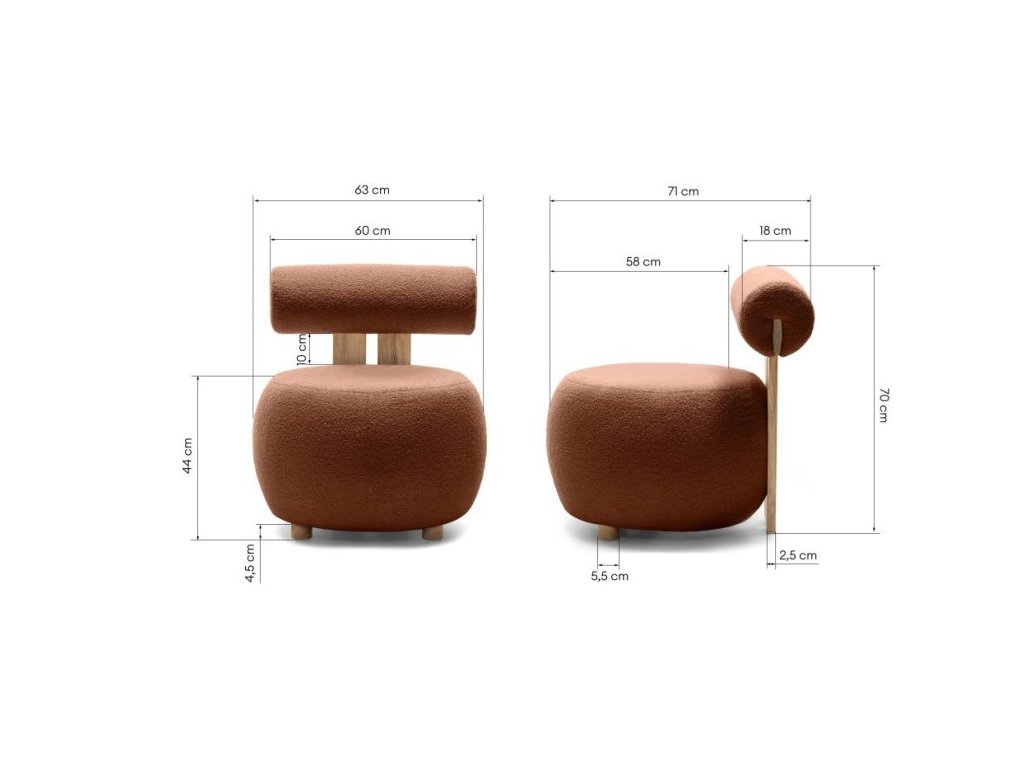 Rjav dizajnerski fotelj HANNA, hrast Now or never 54