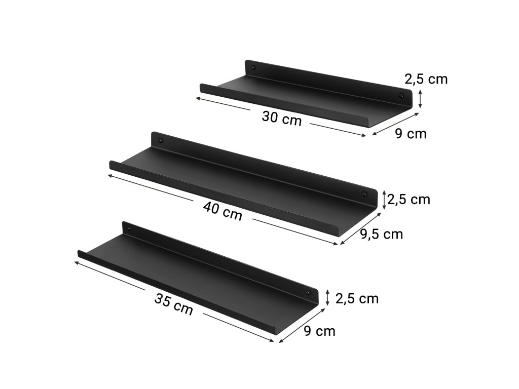 - Velika polica: 40 x 9,5 x 2,5 cm