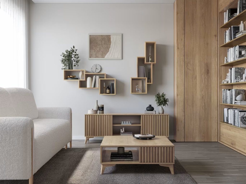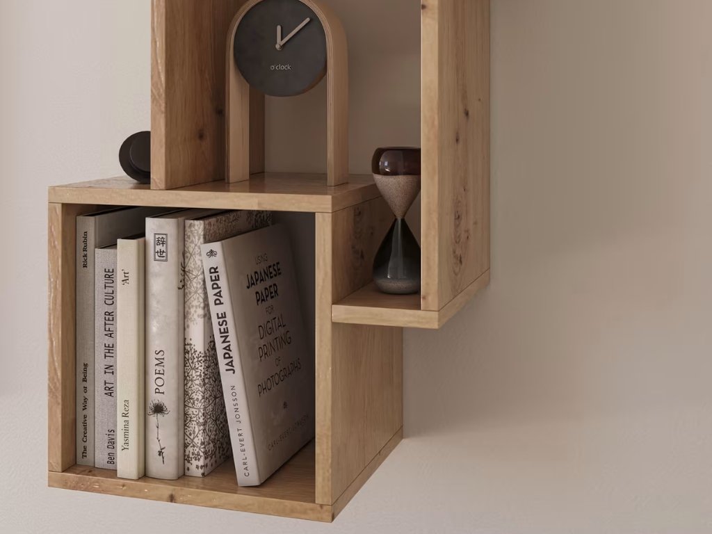 - Dizajnerska polica z odprtim shranjevalnim prostorom