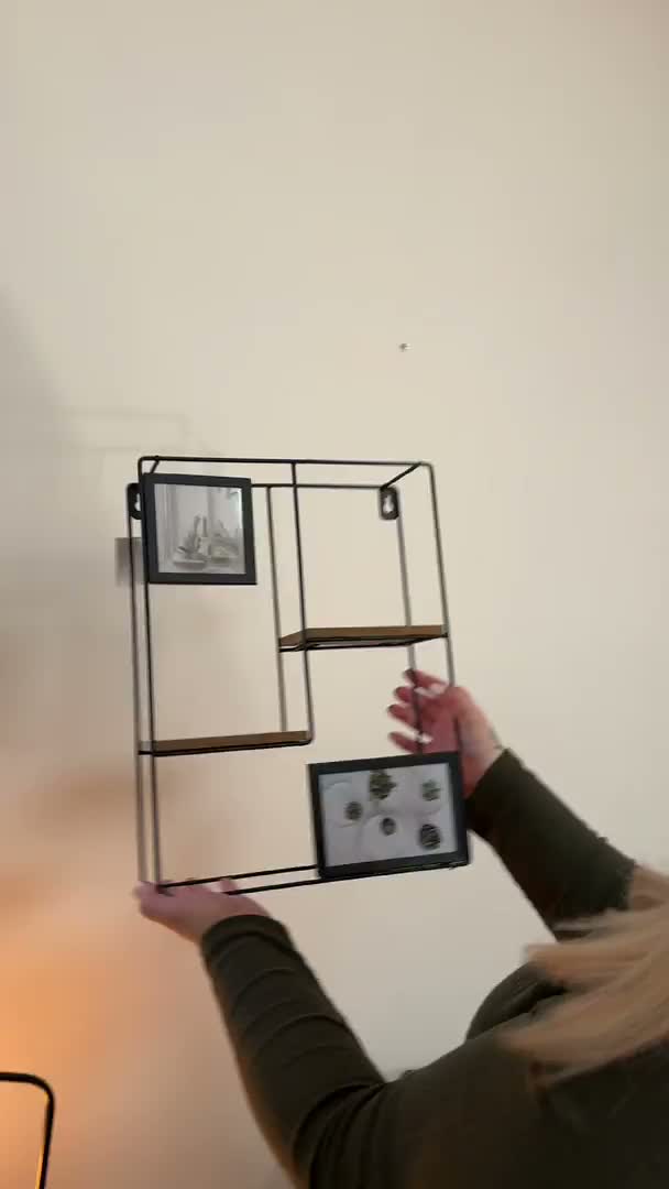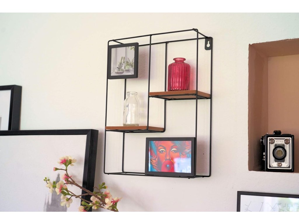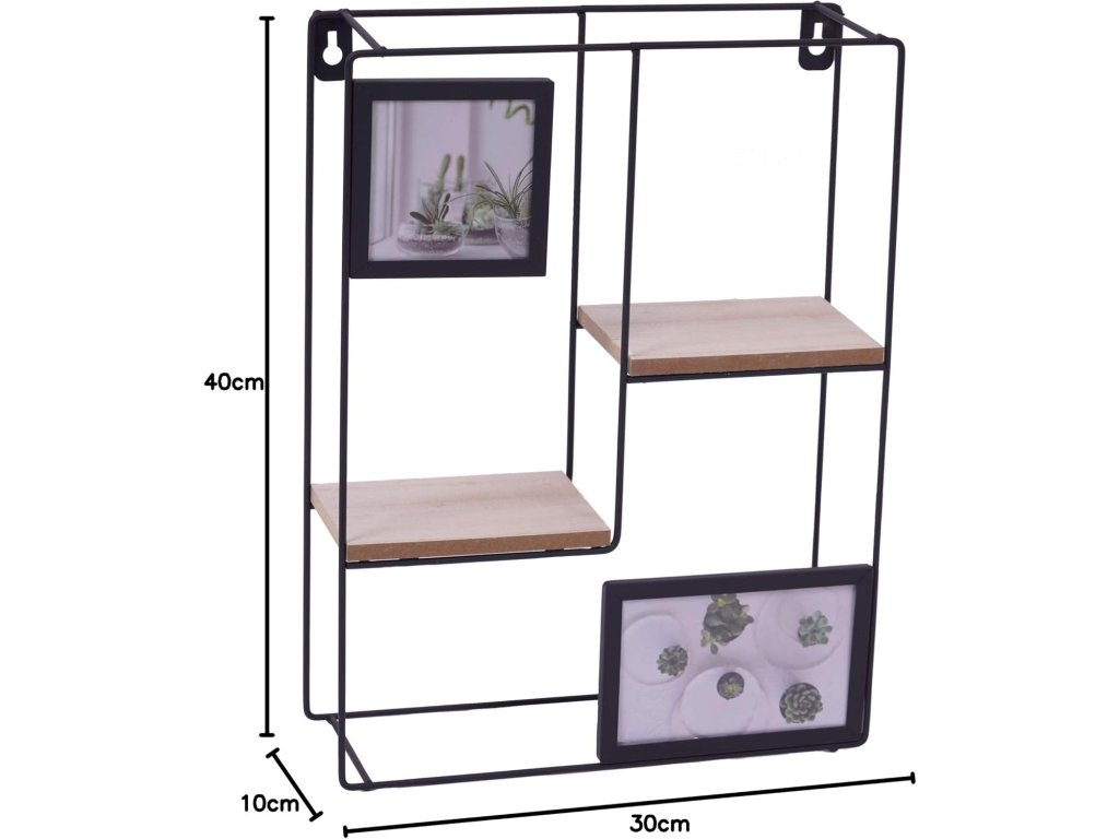 Stenska polica s foto okvirji KIVORA 40x30 cm, črna
