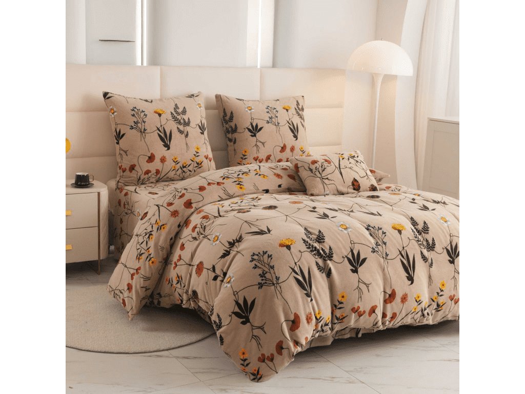Posteljnina mikropliš HERBÁRIJ bež barve
