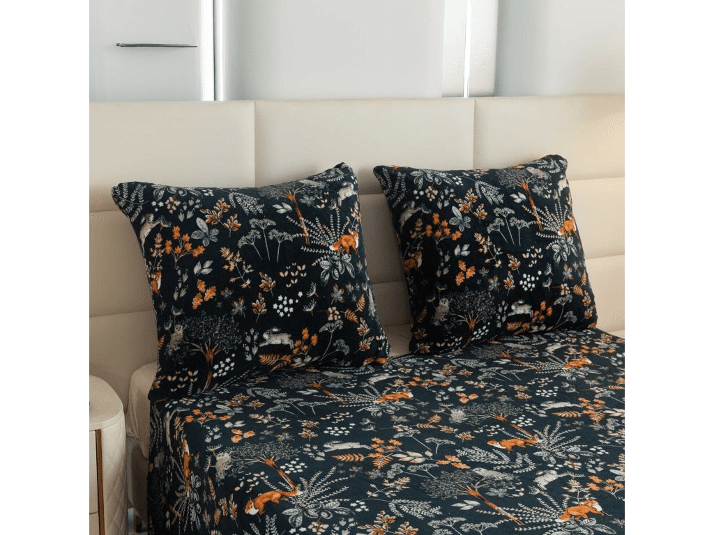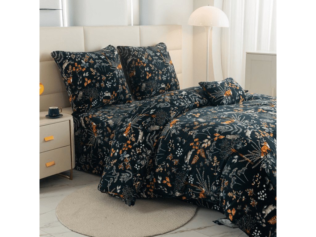 Posteljnina mikropliš LISICA IN ZAJEC temno zelena