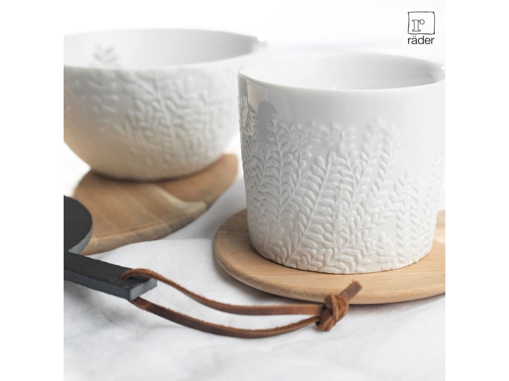 Lasten dizajn, naravni materiali in nežne barve. Nemški Räder izdeluje elegantne dodatke za vsak interier že od leta 1968. Porcelan, steklo in kakovostni tekstil so glavni atributi, ki jih uporabljajo pri izdelavi svojih izdelkov. Lahkotnost in preproste oblike skandinavskega minimalizma bodo krasile vsak prostor. Dodatki Räder polepšajo vsakdan, ustvarijo prijetno vzdušje in vnesejo toplino v dom. Ni naključje, da je podjetje po 50 letih delovanja prejelo nagrado German Design Award Special 2018.