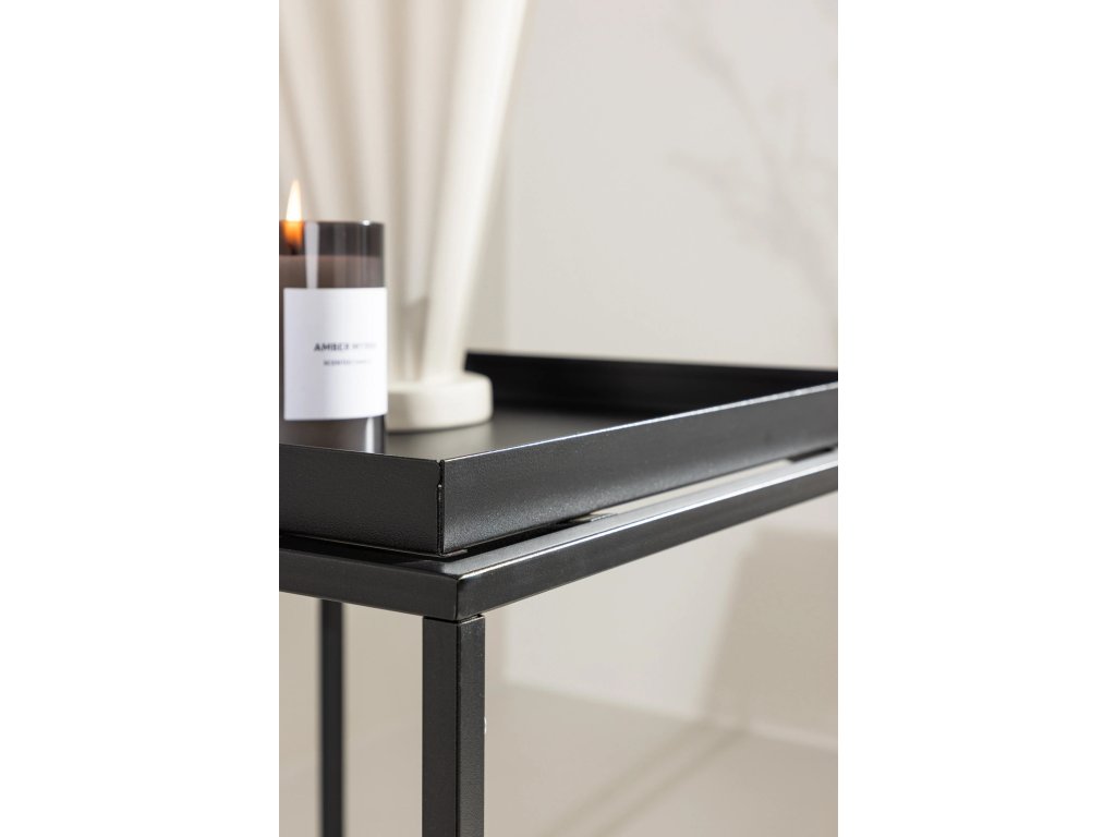 Ta stranska mizica v industrijskem slogu izstopa s svojim enostavnim in funkcionalnim dizajnom. Zaradi dvignjenih robov zgornje plošče preprečite neželeno padanje predmetov, kar boste cenili pri vsakodnevni uporabi. Idealna je za odlaganje knjig, dekoracij ali skodelice kave. Z odporno kovinsko konstrukcijo in elegantnim črnim lakiranjem se odlično prilega modernim in industrijskim interierjem. Popolna izbira za dnevno sobo, spalnico ali delovno sobo, kjer navdušuje s svojim čistim in brezčasnim videzom.