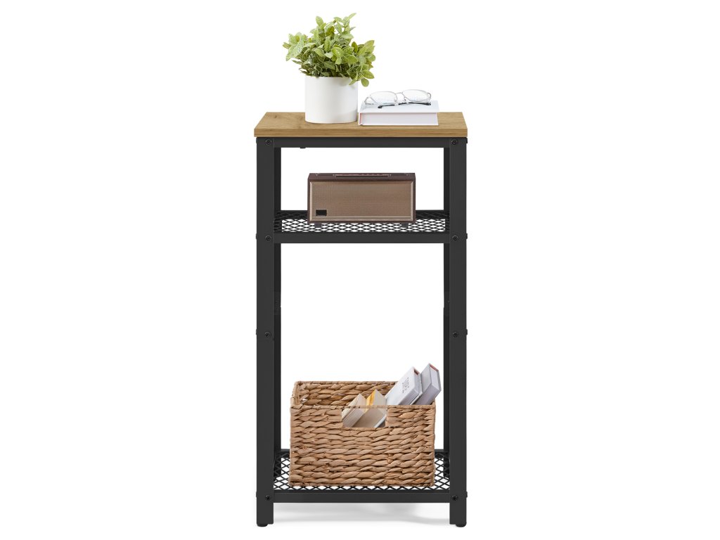 Ta vsestranski kos pohištva ponuja ne le moderen dizajn, temveč tudi praktične lastnosti, ki jih boste cenili v vsakdanjem življenju. Kombinacija odporne iverne plošče in robustnega kovina zagotavlja stabilnost in dolgo življenjsko dobo izdelka, medtem ko njegova vodoodporna površina omogoča enostavno vzdrževanje. Zahvaljujoč svojim dimenzijam in nastavljivosti nogic se popolnoma prilega v različne prostore, od dnevne sobe do pisarne. Industrijski stil v kombinaciji s funkcionalnostjo ustvarja eleganten in praktičen dodatek, ki izpolnjuje vaša pričakovanja in vašemu interierju dodaja moden pridih.