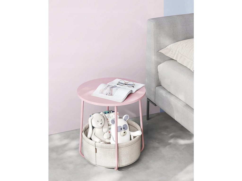 Rožnata stranska mizica z odlagalno košaro SALMA