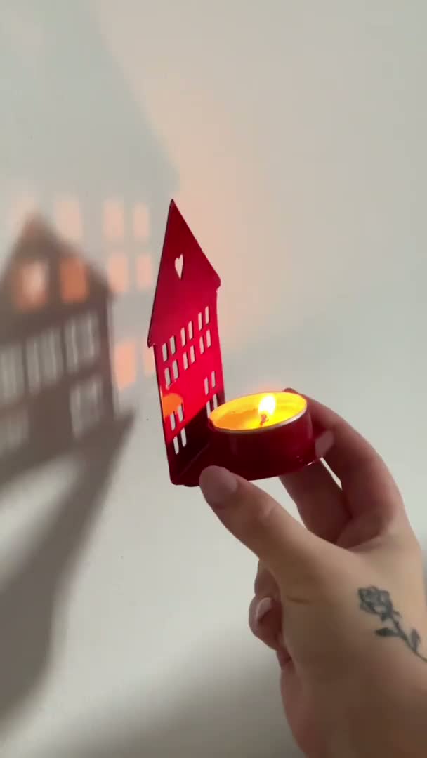 Svečnik za čajne svečke TEALIGHT HOUSE FACADE, rdeč