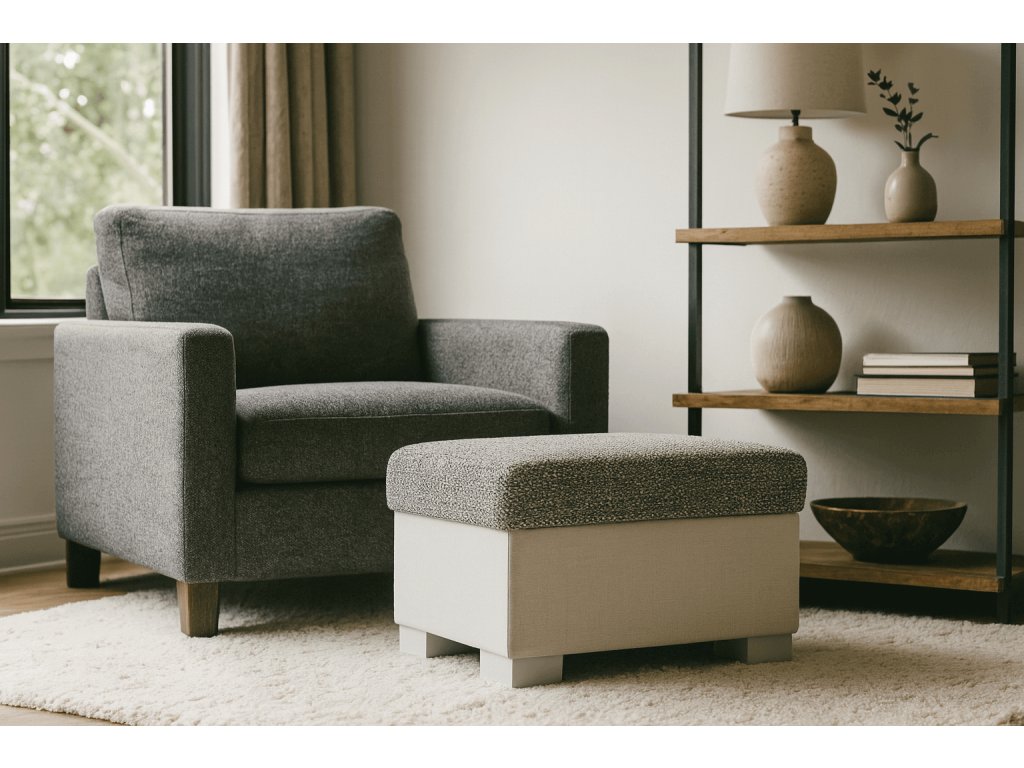 - Sodoben oblazinjen taburet s shranjevalnim prostorom