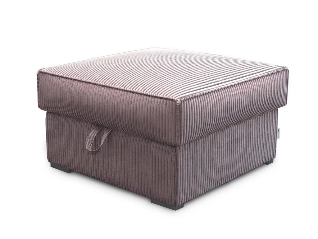 Taburet je prevlečen s tkanino Poso z nežno rebrasto teksturo, zelo prijetno na dotik, z visoko gramaturou 380g/m2 in odpornostjo proti obrabi. Konstrukcija tabureta je izdelana iz močne pohištvene plošče, dopolnjene z masivnim lesom. Sedalo je sestavljeno iz pene polnjenja, ki zagotavlja udobno sedenje.