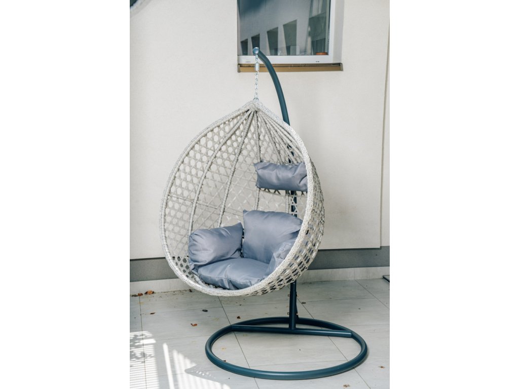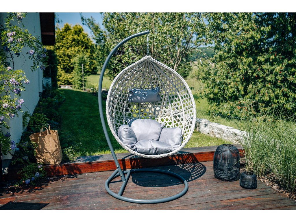 Sivi viseči stol TROPIKAL s stojalom in sivim vzglavnikom