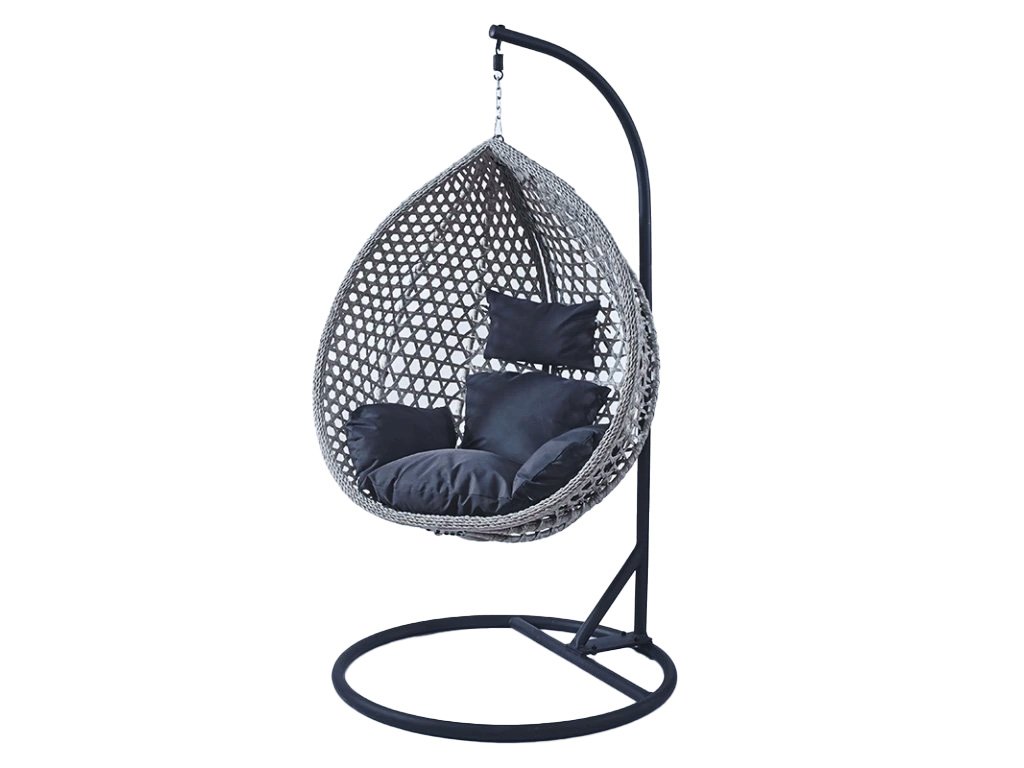 Svetlo sivi viseči stol TROPIKAL s črnim stojalom