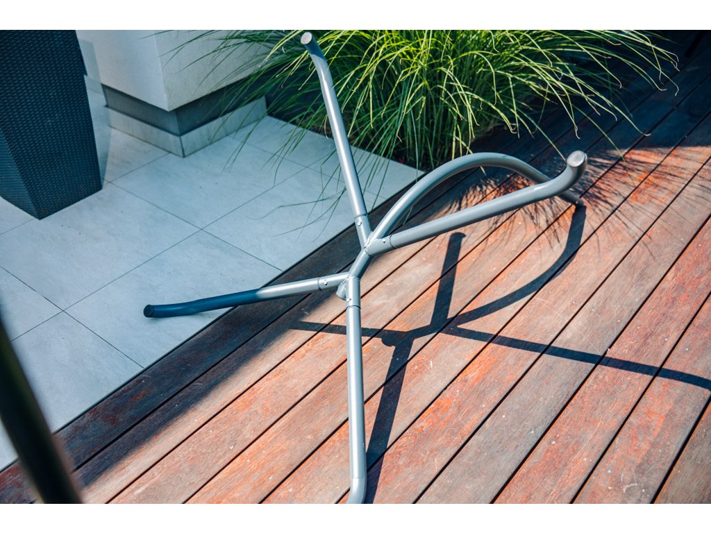 - Če za obešanje stola uporabljate stojalo, ga postavite na ravno in trdno površino, kjer bo njegov položaj stabilen (npr. podlaga, tlakovano dvorišče).