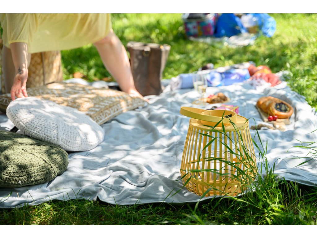 Lesena viseča laterna AIRA ORANŽNA z ročajem - več velikosti