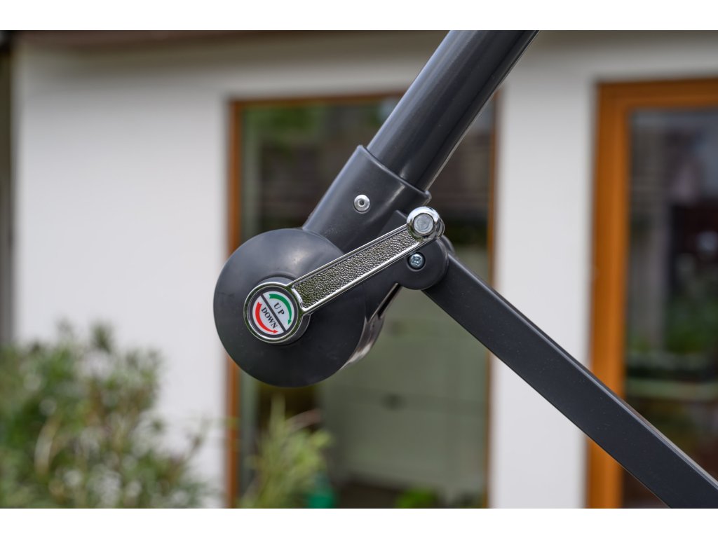 Ne puščajte senčnika razprtega v neugodnih vremenskih pogojih. Med zelo močnim vetrom priporočamo zložiti senčnik, da se izognete poškodbam.