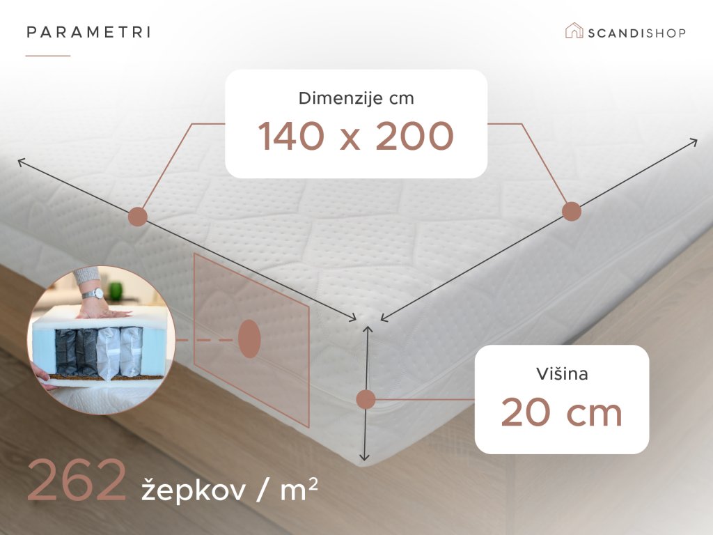 | Dimenzija vzmetnice: | 140 x 200 cm |